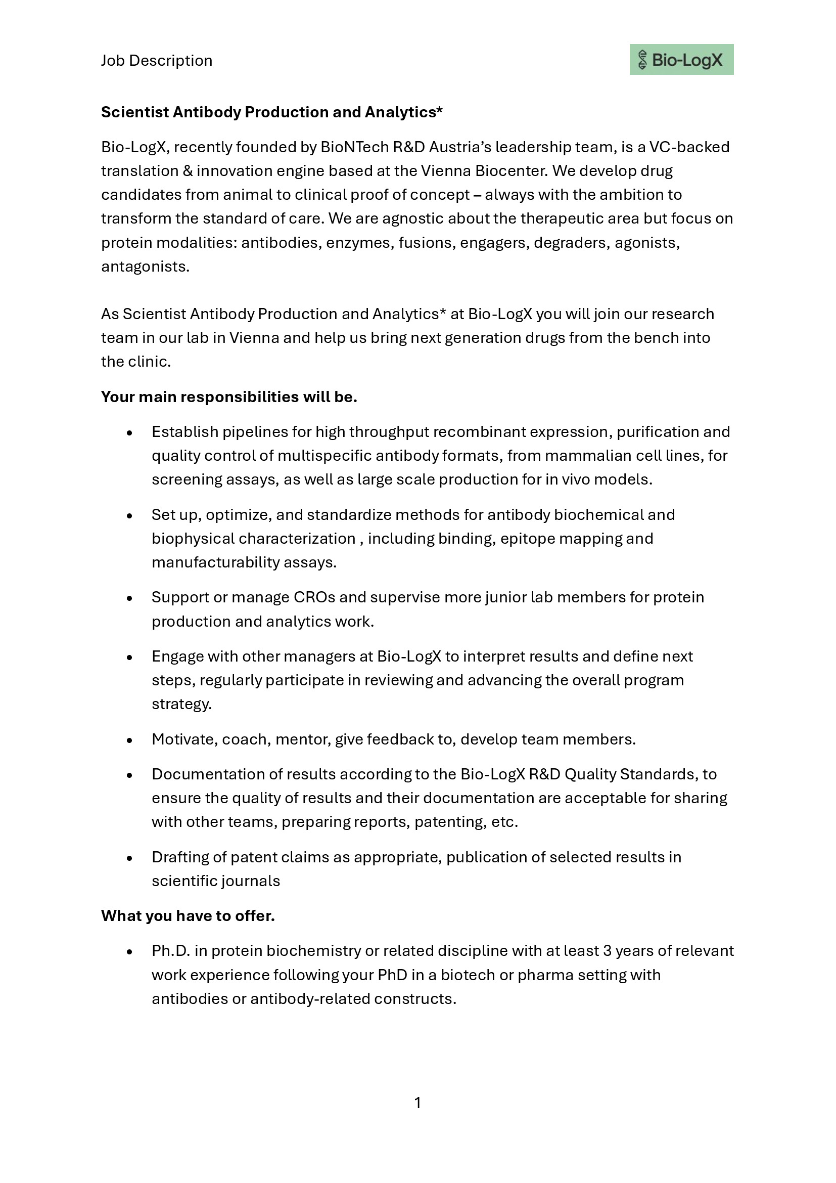 Scientist Antibody Production & Analytics*